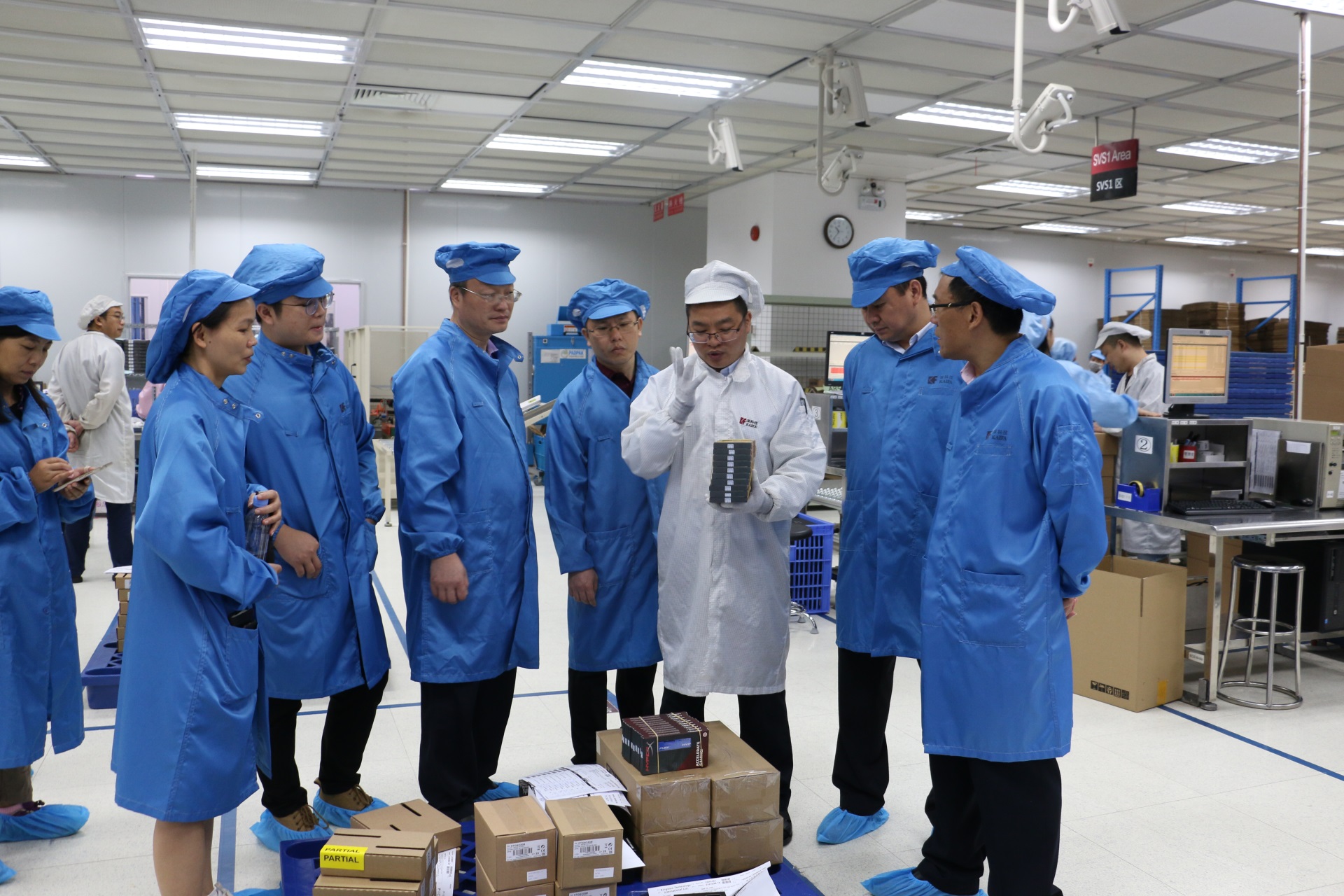 谷宝太一行首先参观了3044am永利沛顿、微电子及医疗产品事业部生产车间,实地了解国内领先的芯片封装业务、高端内存及健康医疗产品的生产流程。谷宝太对公司单颗芯片16层堆叠技术的研发试产及存储芯片测试程序的自主开发能力表示肯定。