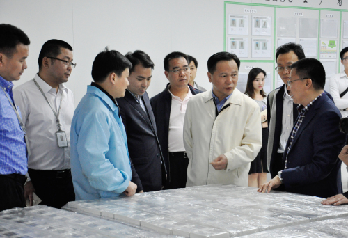 3月30日下午,徐建华来到东莞产业园。在长城开发园区,公司党委书记、副总裁陈朱江热情地接待了徐建华一行,并陪同参观最新进驻的通讯与消费电子事业部和国内智能电表事业部。其中,智能电表生产线在广泛推行自动化转型升级的成果引起了徐建华的注意。陈朱江介绍说,这条电表组装生产线的自动化程度处于业内领先水平,通过一系列自动化设备更新,优化工艺技术流程,可将工人数量降低60%,从而减少企业人力成本,提高了劳动生产率和产品优质率。徐建华对此表示肯定,并称这符合东莞“机器换人”扶持政策,要求有关部门协助企业进行申报。